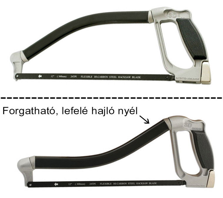 Profi 300 mm-es kézi fémfűrész, forgatható markolattal, hogy a nehezen hozzáférhető helyeken is könnyedén tudjunk dolgozni vele.